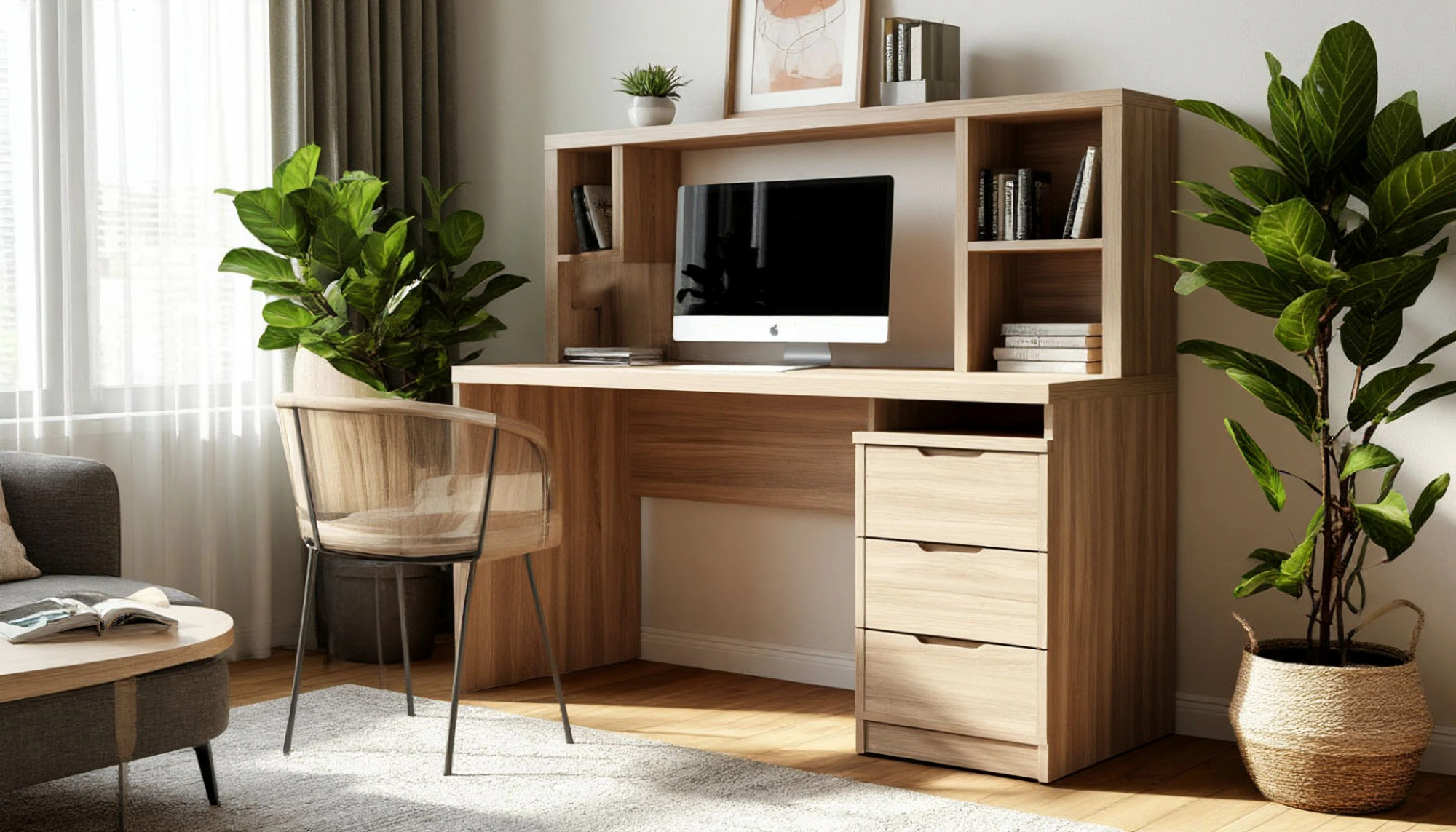 Выдвижные ящики, расположенные под столом, обеспечивают лёгкий доступ к важным вещам и помогают организовать пространство. Внутреннее пространство ящиков достаточно вместительное, что позволяет хранить в них не только канцелярские принадлежности, но и мелкие аксессуары, такие как зарядные устройства или блокноты. Плавное открытие и закрытие ящиков обеспечивает комфорт в использовании, а качественные направляющие гарантируют долговечность и надёжность.