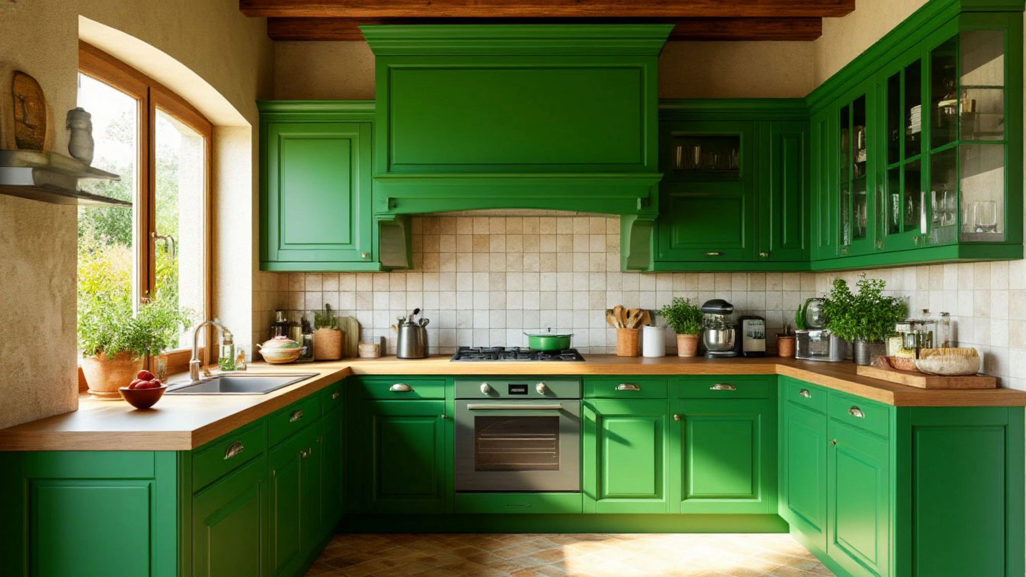 Модель "Романо" воспринимается как интерьер с характером, в котором нет резких контрастов и показной эффектности. Зелёные фасады создают ощущение прохлады, уравновешенности и визуальной чистоты, при этом цвет остаётся тёплым и живым. Он хорошо читается при дневном свете и становится глубже вечером, особенно в сочетании с мягким освещением. Такой оттенок ассоциируется с итальянскими внутренними двориками, оливковыми рощами, тенью от каменных стен и прохладой старых домов, где каждая деталь служит не моде, а комфорту.