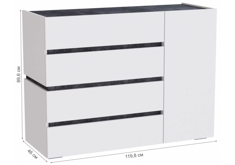 Комод Атлон белый / бетон темный (119,8x46x89,6)