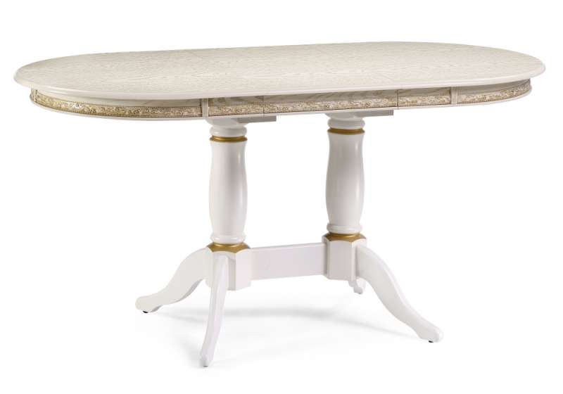 Стол деревянный Кантри 120(160)х80х75 слоновая кость с золотой патиной (80x75)
