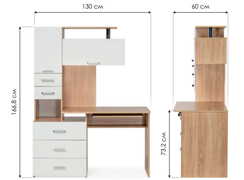 Компьютерный стол Джаз-17 правый 130х60х166,8 дуб сонома (60x166,8)