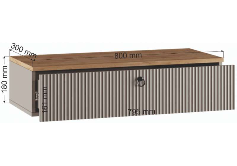 Туалетный столик Ника ПВШ бежевый мат-05 / кашемир / дуб делано подвесной (80x30x18)