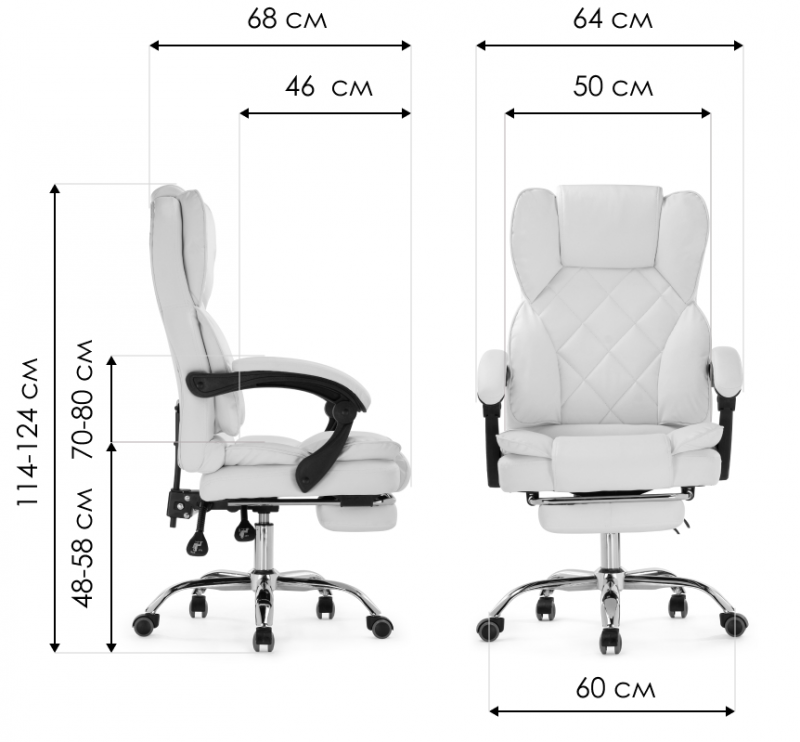 Высота подлокотников: 70 - 80 см. Диаметр крестовины: 60 см.
